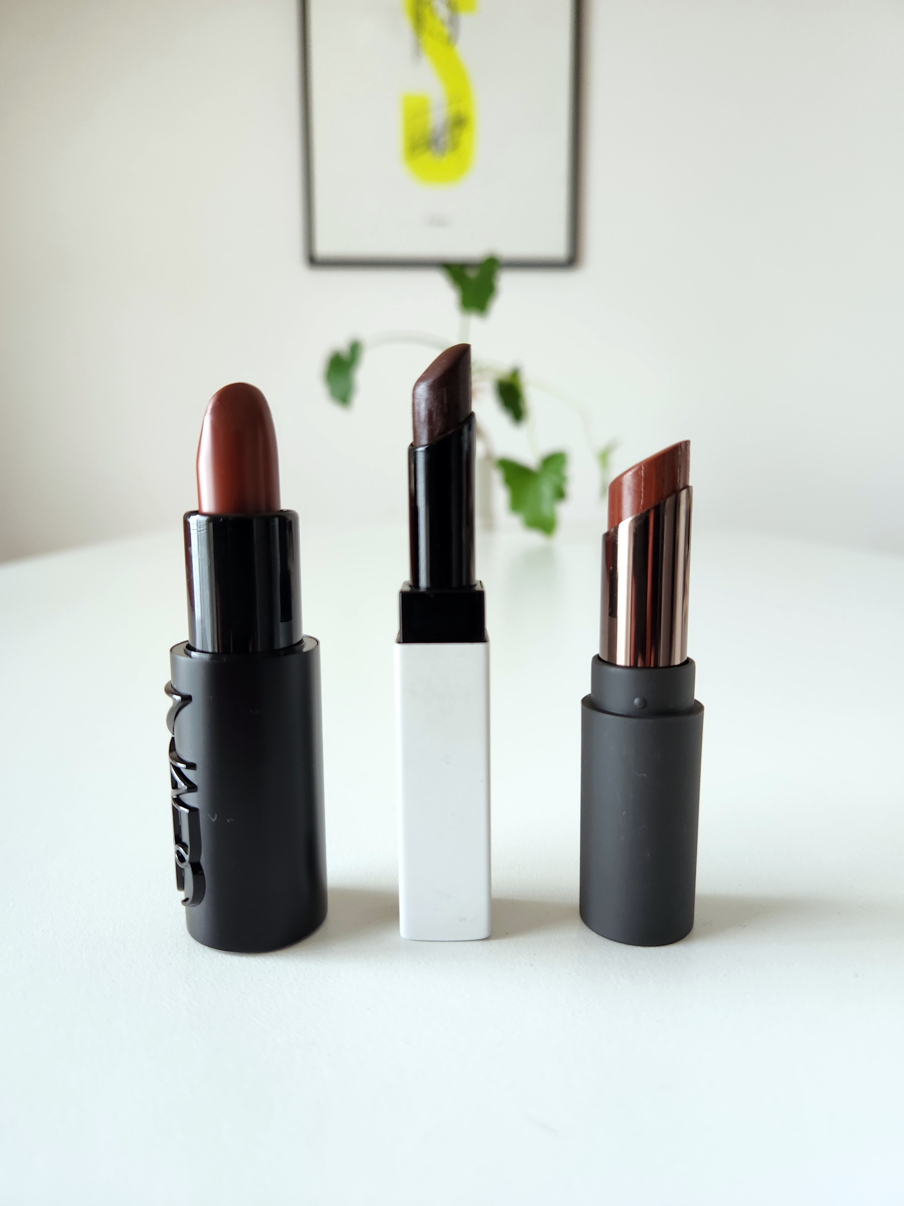 ジャケットは少し堅苦しく見えてしまうから、ラフに着崩す引き算、つまりは「抜け感」が必要で、それをリップで調整してあげると着こなしがぐっと今っぽくなります。ブラウンリップって難しそう、私には似合わなそう……そう尻込みする前に、まずはぜひいろいろ試してみてください。そして似合う・似合わないにあまりこだわらず、自分の心が“ワクワクする”ものを見つけてほしいと思います。
