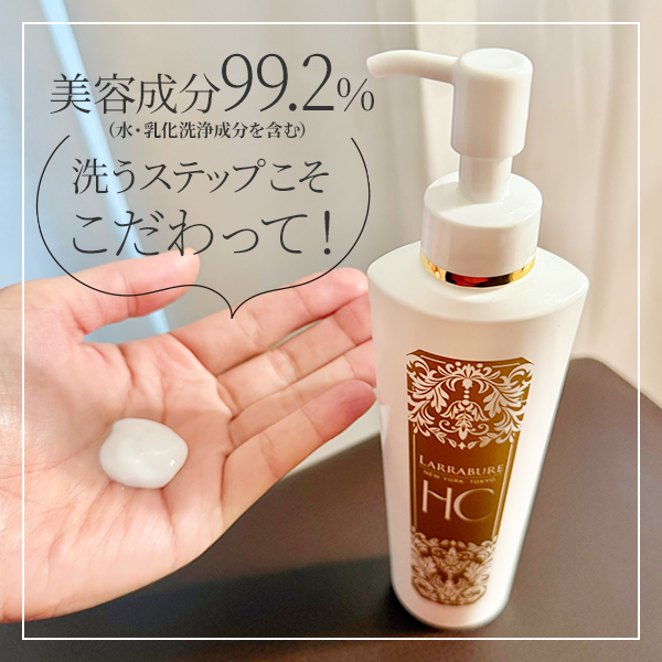 ララビュウ開発者の女性は、美容好きが高じてアメリカの名だたる皮膚専門家たちのカウセリングを受け、皮膚科学会に参加するなど精力的に活動。培った知見をもとに、「日本人はもっと洗顔に意識を向けるべき」と、こだわりの製品を生み出しています。ララビュウ「HCモイスト クリア ミルククレンジング」には、エイジングケア**が気になる世代のあいだで話題のNMN*を配合。
