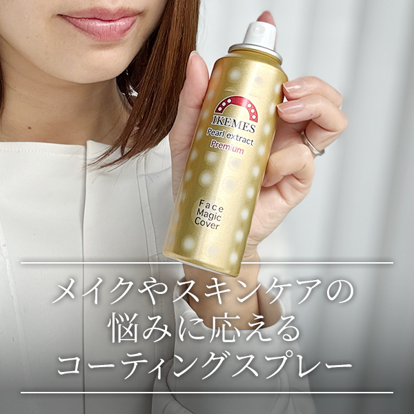 「フェイスマジックカバー パールプレミアム」を開発した「イケメス」は、広島のエステサロン。メイク崩れが気になる、塗った日焼け止めをキープさせたい、洋服にメイクが付着するのを防ぎたい、といった、サロンのお客様の声に応えるためにこのメイクカバー用スプレーを開発しました。