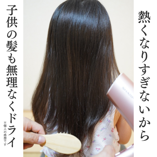 実は私だけでなく、子供達にも嬉しいポイントが。細く絡まりやすい髪も、翌朝までクシ通りがよく感じられ、ドライヤー後の仕上がりが扱いやすい印象に。熱が強くなりすぎずに時短で乾かせるので、小さい子供の髪にも使いやすいと感じました。