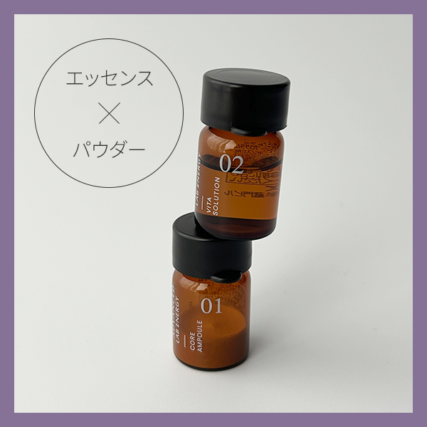 エッセンス2剤はお肌にハリを与えるナイアシンアミドや、ビタミン10種類※2といった美容成分を配合。肌にハリ、潤い、ツヤ、キメを与え、なめらかな肌へと導きます。