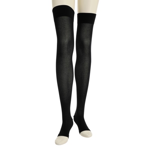 年齢とともに気になるひざ上。そこまでしっかりケアできる太ももまでのロング丈で、着用効果によって脚全体をキュッと締めます。ロング丈で快適な着圧を出すためには職人技が必要です。ずり落ちづらく、気持ちの良いはき心地を目指しました。