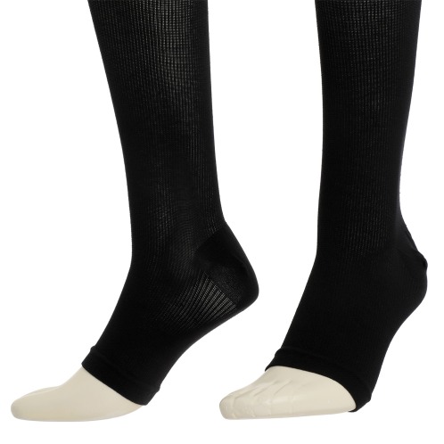 足先を締め付けないオープントゥなので、足指ラクラク。足に圧をかけたら、足指は解放することが大切と考え、さらに寝ている間も足がムレず、汗冷えしづらいようになっています。