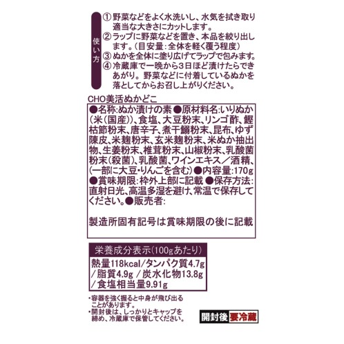 誰でも簡単、お手軽にぬか漬けが楽しめるように、“ぬかどこ”をチューブタイプにした「CHO美活ぬかどこ」のご紹介です。