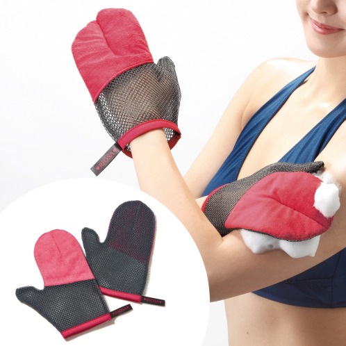 本品は、右手用・左手用があり、右手と左手をはめかえながら使うことでダブルクッション面とクロス面の2つの機能で洗うことができます。