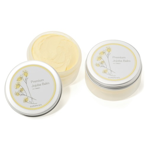 <サンナチュラルズ>より、お肌にハリ・ツヤ・潤いを与え、キメの整った柔らかなお肌へ導くアメリカ産のケイコ種のプレミアムホホバオイル(ホホバ種子油)を配合したスキン&ヘアバームクリームの2個セットです。
