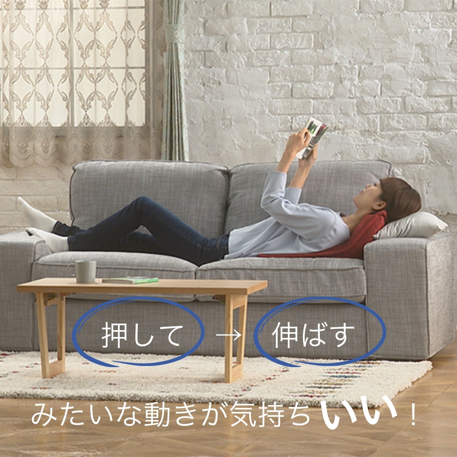 上に座ってもマッサージが止まらない機構で、お尻のマッサージが可能に!体重を掛ければ、くの字部分のサスペンションが反発して戻ってくることで、上に寝転んでも立体的なマッサージで、気持ちよくご使用いただけます。
