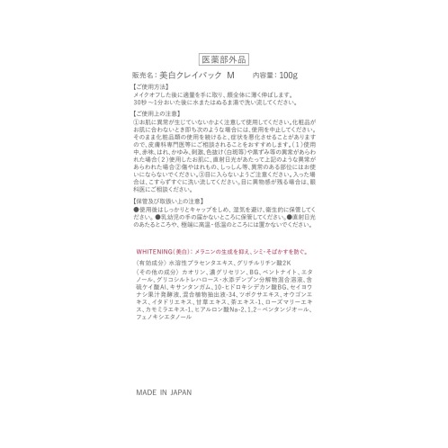 <花蔵>より、有効成分水溶性プラセンタエキス、グリチルリチン酸2Kを配合し、美白(メラニンの生成を抑え、しみ・そばかすを防ぐ)、 肌荒れを防ぐ(肌あれ・あれ性)、にきびを防ぐ 効果のある薬用美白クレイパック100g、2倍サイズ(200g)のセットです。