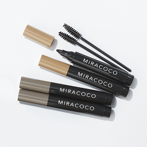 <ミラココ>より、こだわりのマーカータイプのペン先を採用した、太くも細くも描けて、眉の濃さも自由自在のティントタイプで長時間落ちにくくアイブロウ2本セットです。