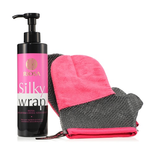 リオッサ バスタイムに簡単角質ケア 肌磨きミトン& ボディ用美容クリーム シルキーラップ 特別セット