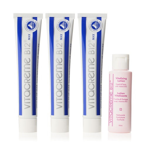 <ビタクリーム B12>より、保湿に優れたビタミンB12(シアノコバラミン)を配合し、肌荒れを防ぎ、健やかでなめらかなお肌に整える保湿クリーム50ml×3、化粧水50mlサイズのセットです。