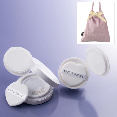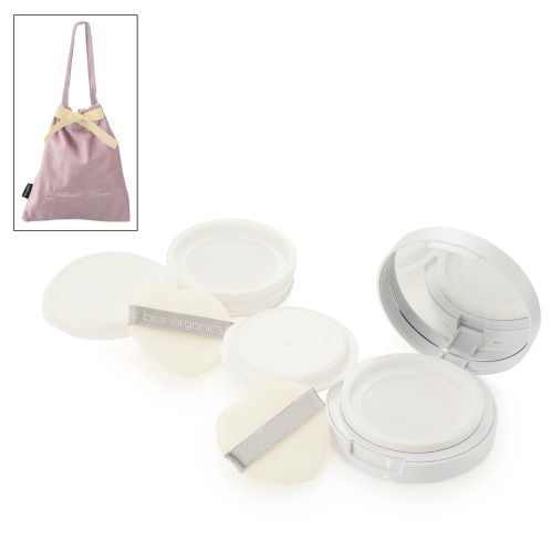 <ビオール オーガニクス>より、お顔はもちろん、デコルテや手・ボディにも使える白浮きしにくいトランスルーセントタイプの日焼け止めパウダーのレフィル(詰め替え用)×2個と専用コンパクトケース、ポーチのセットです。