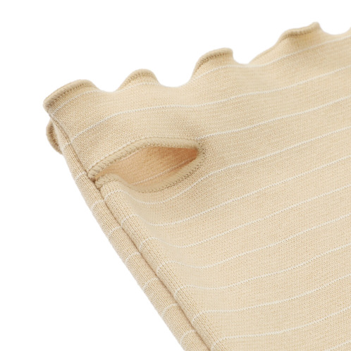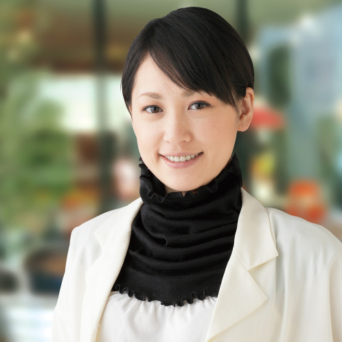 襟口にはメロウ加工をほどこしているので、首元にまとえばおしゃれなネックカバーとしても使用することができます。