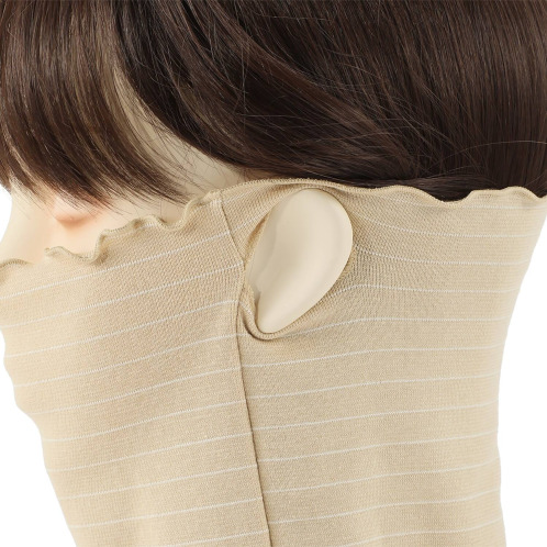 伸び伸びストレッチ素材を使用しているので、頭からすっぽり簡単に着脱ができ、しっかり伸びるため髪型も崩しにくくなっています。