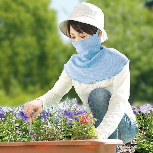 1枚で顔下半分から肩口まですっぽりと覆い、しっかりとUV対策ができるフェイスガードをご紹介です。