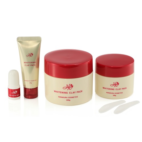 関東で30年の歴史を持つエステサロンがプロデュースするコスメ<花蔵>より、有効成分水溶性プラセンタエキス、グリチルリチン酸2Kを配合し、美白(メラニンの生成を抑え、シミ・ソバカスを防ぐ)、肌荒れを防ぐ(肌あれ・あれ性・にきびを防ぐ)効果のある薬用美白クレイパック100g、2倍サイズ(200g)、20gサイズ、有効成分アルブチン、トラネキサム酸、ビタミンC誘導体(3-O-エチルアスコルビン酸)を配合し、美白(メラニンの生成を抑え、シミ・ソバカスを防ぐ)、肌荒れを防ぐ(肌あれ・あれ性)効果のある薬用乳液5gサイズのセットです。