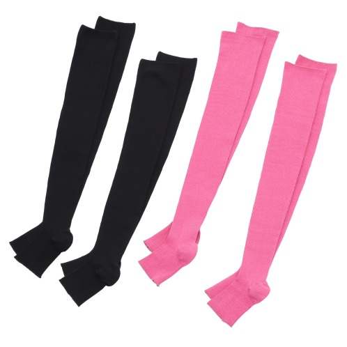 お肉は動きます!”をモットーとするボディケアブランド、<リオッサ>より、ビューティマスター小野砂織(おの さおり)さんが、現場で得た経験をもとに美脚を目指して一から開発した、寝ている間も脚をケアできる、着圧タイプの「寝るときソックスIV」、合計4足セットのご紹介ですつま先なしタイプの「黒」と、「アンティークローズ」のセット。