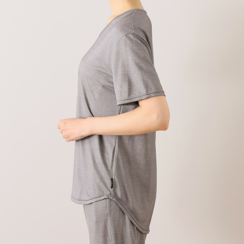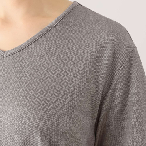 「コンフォートクール」は、“PHT”に、セルロースをブレンドした生地を使用しているので、袖を通した時の適度なひんやり感が、夏にぴったり!さらりとした肌触りで、軽やかでしなやか、するっと着用いただけるように、シルケット加工をほどこし、鹿の子編みで仕上げました。