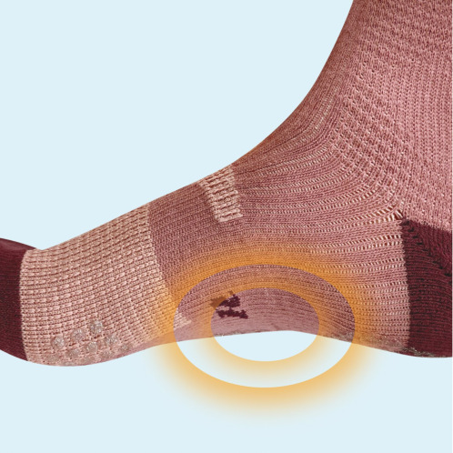“テーピング編み機能”“足袋型設計”“サポーター”の3つを組み込み、立体構造で足の構造に合わせてしっかりサポートするソックスです。