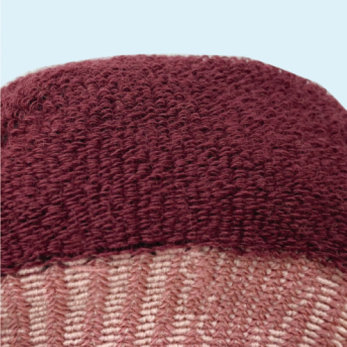 かかととつま先部分はパイル編みで、衝撃を緩和させるやさしい足あたりを実現。