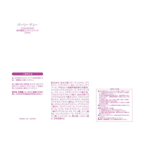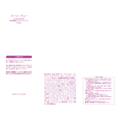 ・同梱物:パーリーデューFUSHIKA99夜用濃密エッセンスパックご使用方法