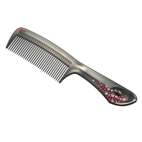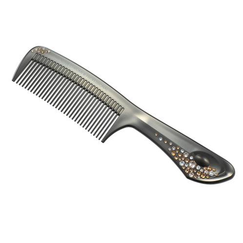 コーム本体部分の高級感のあるシックなディープブラックカラーに、きらきらと輝くプレシオサ社製クリスタルガラスをお花畑のイメージでデザイン。