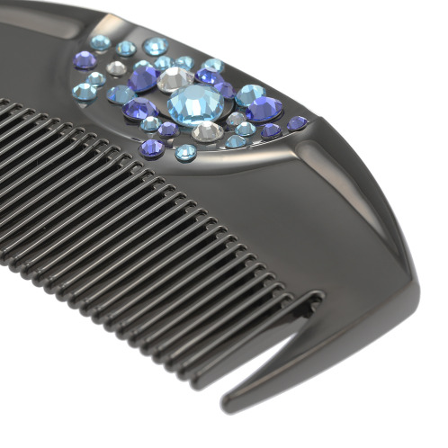 コーム本体部分の高級感のあるシックなディープブラックカラーに、きらきらと輝くプレシオサ社製クリスタルガラスをお花畑のイメージでデザイン。