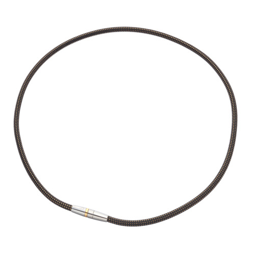 ゴムの状態では肌当たりが良くないと考え、生地で覆うことで着用感を向上。生地を覆っても、一定の磁力がネックレス全体から均等に発生します。