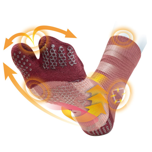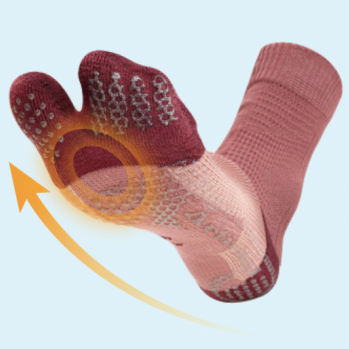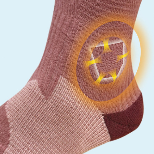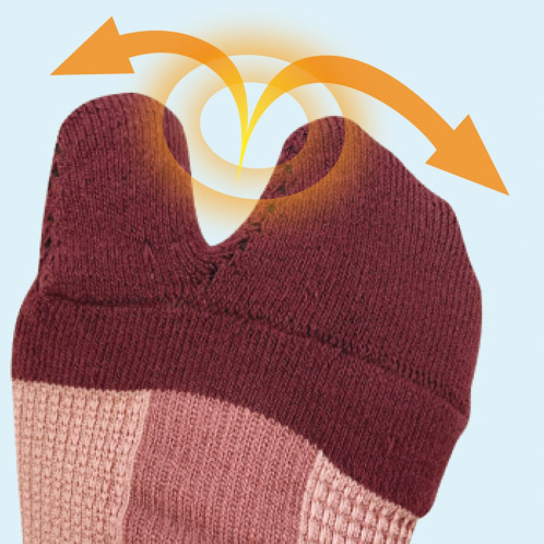 “テーピング編み機能”“足袋型設計”“サポーター”の3つを組み込み、立体構造で足の構造に合わせてしっかりサポートするソックスです。