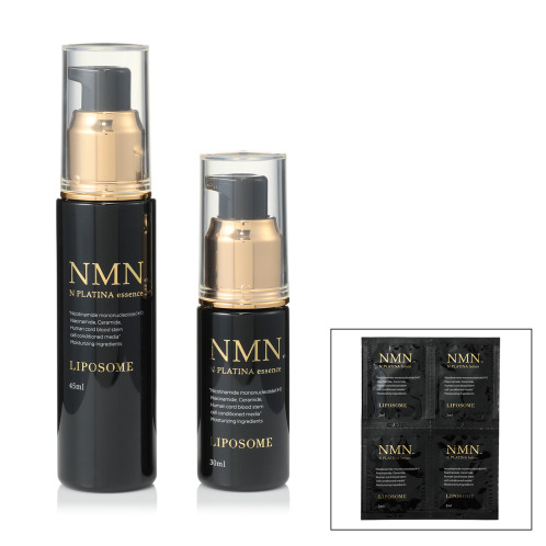 先端成分であるNMN(ニコチンアミドモノヌクレオチド/保湿)を先進技術で配合した美容液30mlと、増量サイズ(45ml)、先端成分であるNMN(ニコチンアミドモノヌクレオチド/保湿)を先進技術で配合、オリジナルの液晶乳化技術を活用した、油分と水分の絶妙なバランスにより肌なじみが良く、潤いを与える化粧水2mlサイズ×4のセットです。