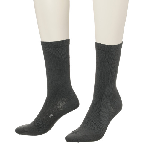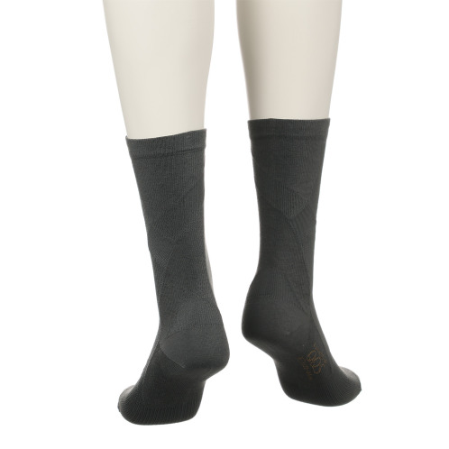 土踏まず部分へテーピングラインをほどこすことにより、足底のアーチ部分をサポートするほか、着圧により足首を引き締め、かかとやアキレス腱周りをサポートできるよう、編み方を工夫しています。