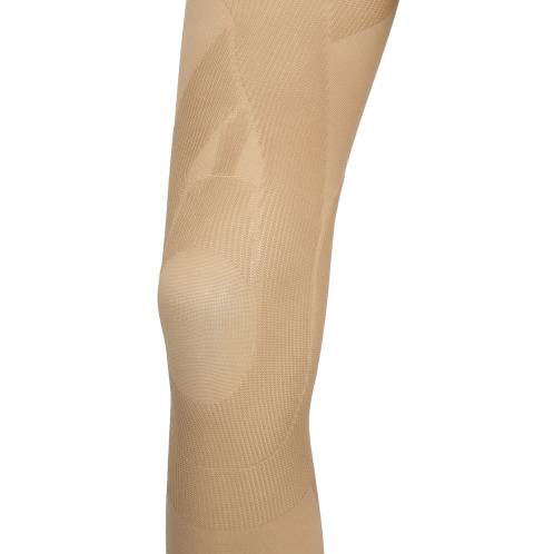 膝を曲げた時に負担のかかる縦方向への伸びを抑えることで、まるで膝を誰かの手で下からそっと支えてもらっているような安心感を感じられます。