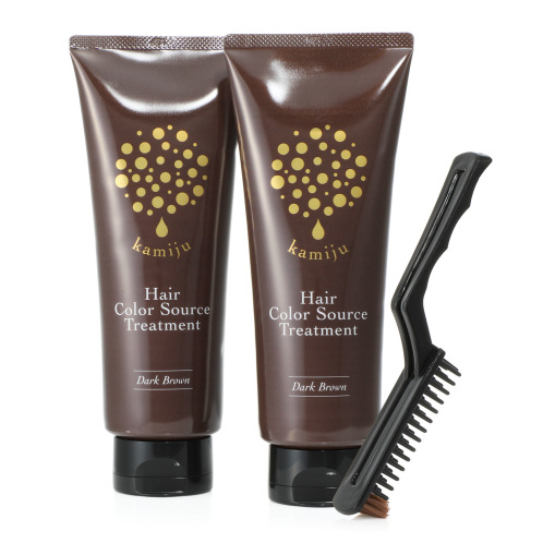 カミージュ 新発想! 白髪を染めながら 髪を補修する ヘアカラーソース 2本特別セット ダークブラウン