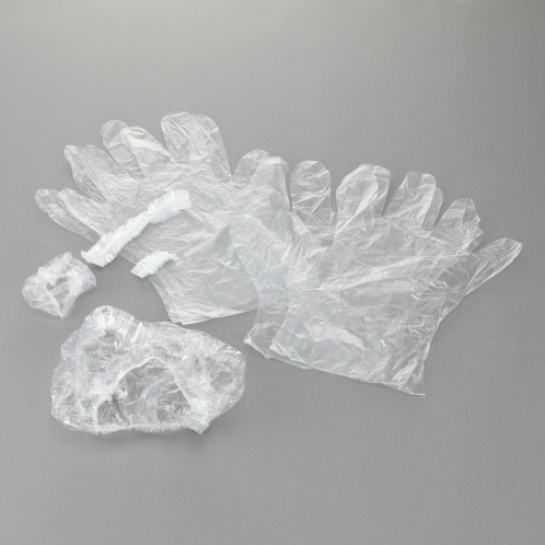 ・ビニール手袋4枚、イヤーキャップ2枚、ヘアーキャップ2枚
