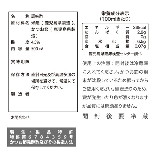 鰹節を米麹と一緒に“甕壺露天醸造法”で発酵させ、出汁酢を作る製法を磨き上げました。