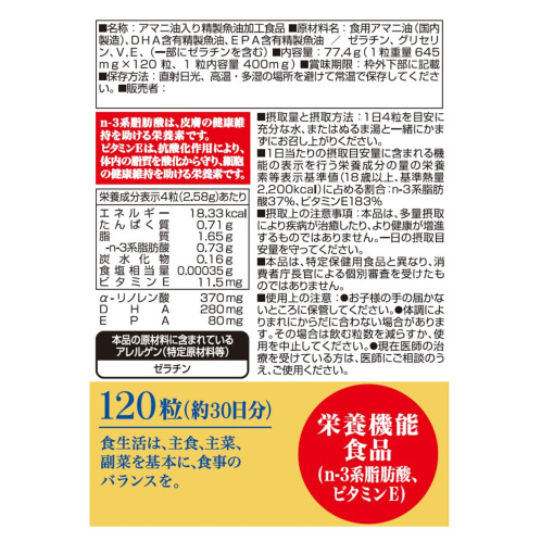 n-3系脂肪酸、ビタミンEの栄養機能食品です。