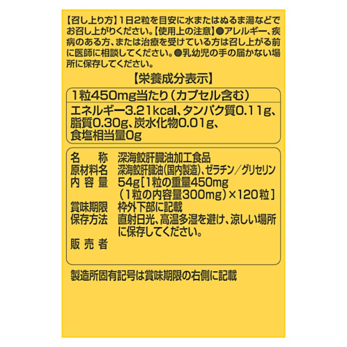 単品商品名・深海鮫肝臓油加工食品54g(1粒の重量450mg×120粒)