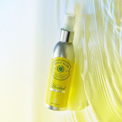 <セブン フロー>より、植物エキスを配合し、ハリのあるお肌に導きつつ、爽やかな香りとともにお肌を潤いで満たすミスト状化粧水とそのつめかえ用×2のセットです。