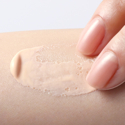 カラーは、エステ後のお肌の透明感をイメージしたクリアベージュ、メイク効果でくすみ肌を透明感のあるツヤ肌に仕上げます。