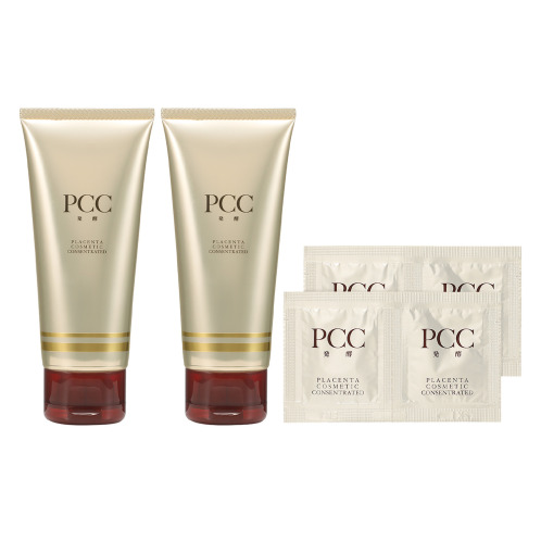 非加熱・無加水抽出法の独自製法で抽出したハリツヤ潤い肌へ導くプラセンタエキスを配合、古い角質、汚れを除去、洗浄する、クレンジング・洗顔料2本と、1.3gサイズ×4のセットです。