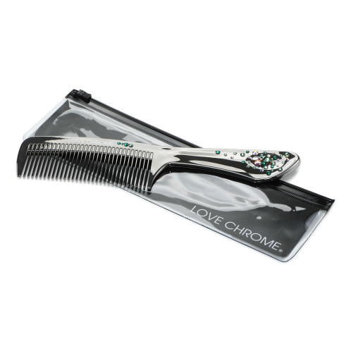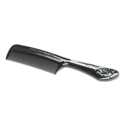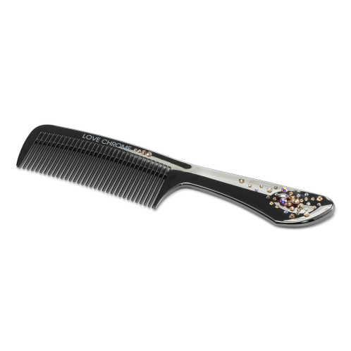 コーム本体部分の高級感のあるシックなブラックカラーに、きらきらと輝くプレシオサ社製クリスタルガラスをお花畑のイメージでデザイン。