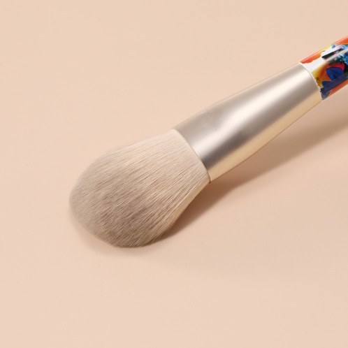 ブラシは、やさしい肌ざわりで、顔全体に沿うよう毛丈を長く、お肌に当たる面が広くなるよう作られた使いやすい形状でパウダーをお肌に自然にのせることができる。