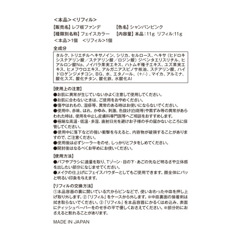 単品商品名・レフ板ファンデ シャンパンピンク 11g ※レフィル