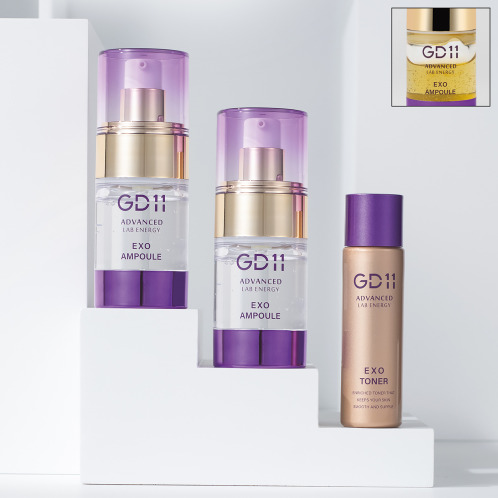 ヒト臍帯血幹細胞由来成分専門のバイオ企業が立ち上げたコスメブランド<GD11(ジーディーイレブン)>より、独自成分であるヒトサイタイ血由来幹細胞エクソソーム、ヒト臍帯血細胞順化培養液といった美容成分を99.9%(水含む)配合したハリツヤ潤い肌へ導く美容液×2と、3つの独自成分であるヒトサイタイ血由来幹細胞エクソソーム、ヒト臍帯血細胞順化培養液、カンステム バイオ ニードル(ヒトサイタイ間葉幹細胞順化培養液エキス、加水分解カイメン)を配合した、皮膚の水分、油分を補い保ち、ハリ、潤いを与えて、なめらかな肌に整える化粧水・30mlサイズのセットです。