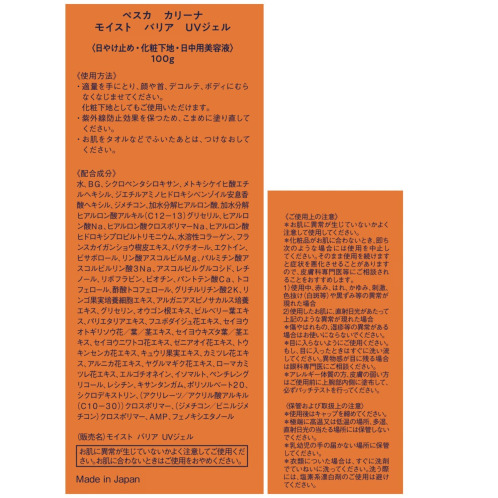 ペスカ カリーナ サロン発想で開発 紫外線からお肌を守り みずみずしい素肌へ! モイスト バリア UVジェル 3本分セット