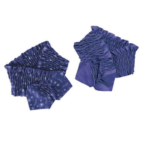 首に巻いて先端を穴に通すだけのかんたん着脱で、伸縮するため首まわりにフィットします。