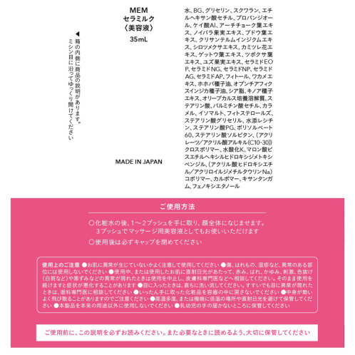 MEM 3種のハリ成分を厳選配合 ふわとろのテクスチャーで すばやく肌になじむ ミルク状美容液 セラミルク