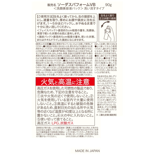 高濃度炭酸ガス配合 贅沢潤いクリーム泡で 洗顔&保湿ケア! ソーダスパフォームVB 3本セット