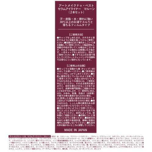 <アートメイク>より、汗、皮脂、水で落ちにくいのに、本品のみ使用の場合38度以上のお湯でスルリと落とせるリムーバー不要のフィルムタイプのリキッドアイライナー×2のセットです。
