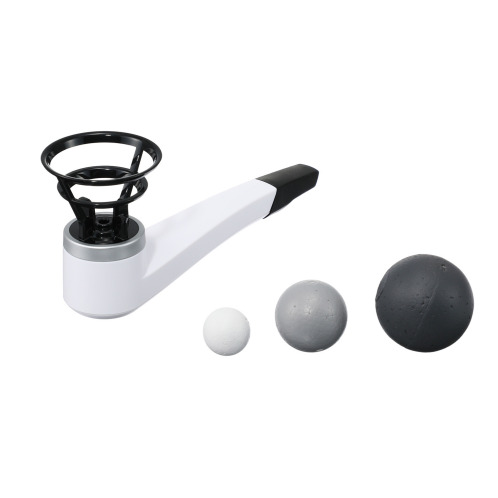 本体の内部にこだわり構造の管を通すことで、吹いた息が分散せず、息の流れが直接ボールに伝わる事で、吹き上げたボールの芯をとらえより安定させる構造になっています。